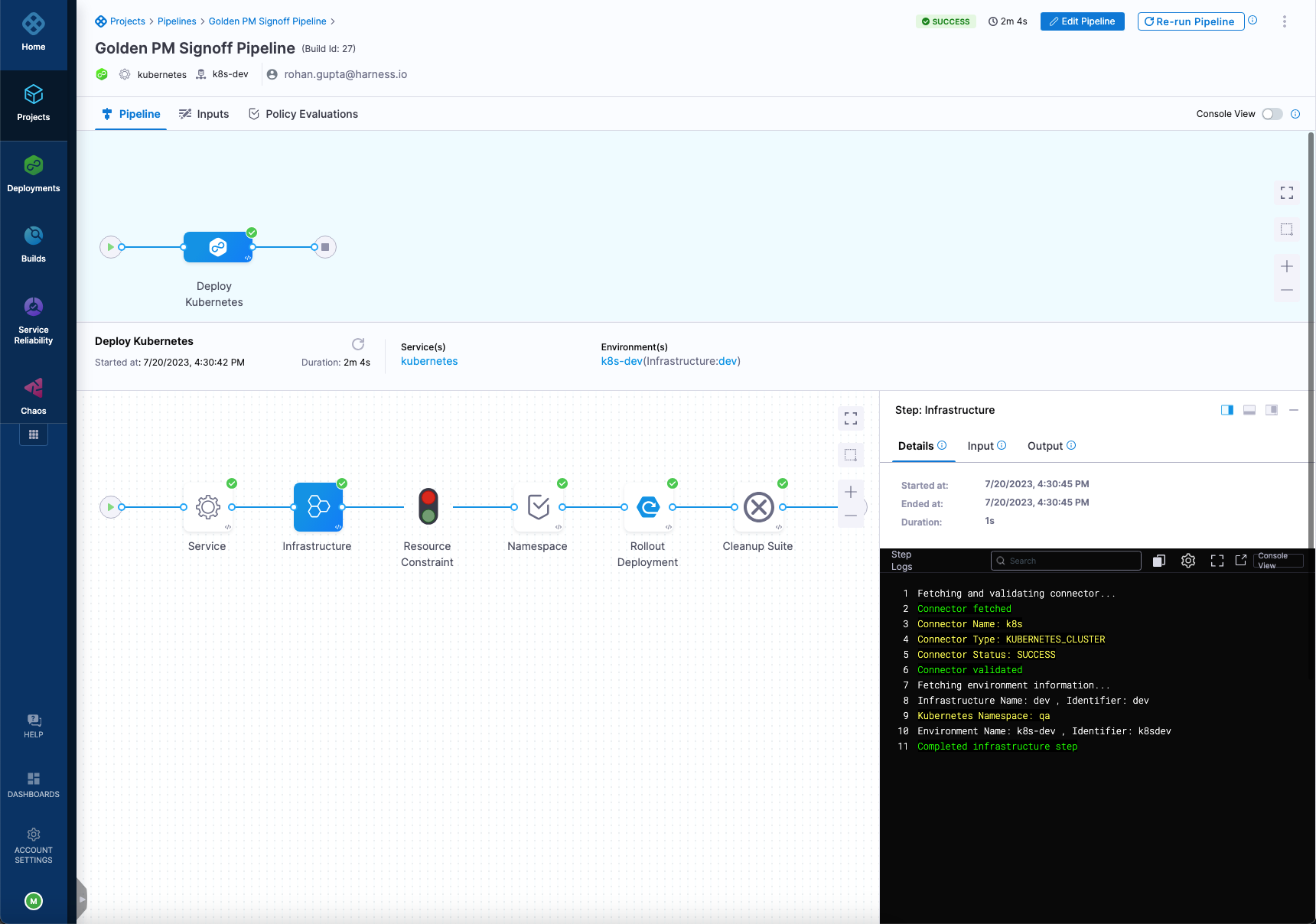- A rolling deployment strategy that uses execution steps to deploy to an existing Kubernetes cluster.