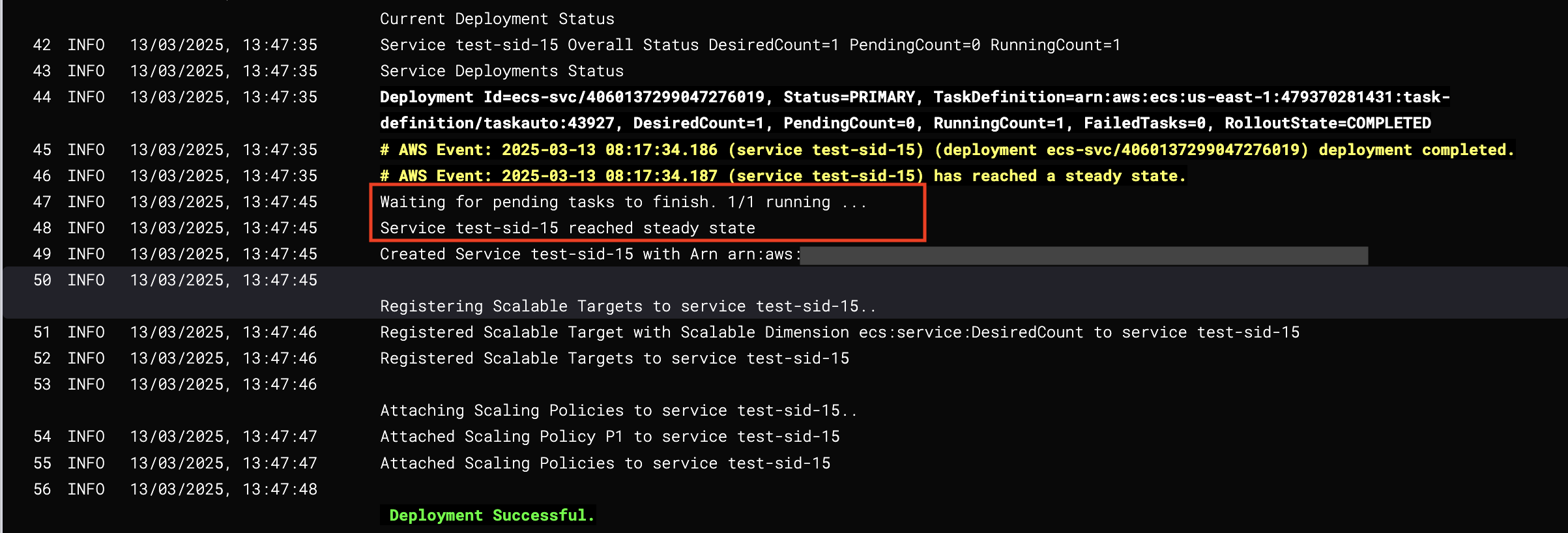 Harness performs some validations before the deployment. Before the deployment, Harness identifies ECS Blue and Green services based on the target group and updates tags accordingly. It then starts the deployment.