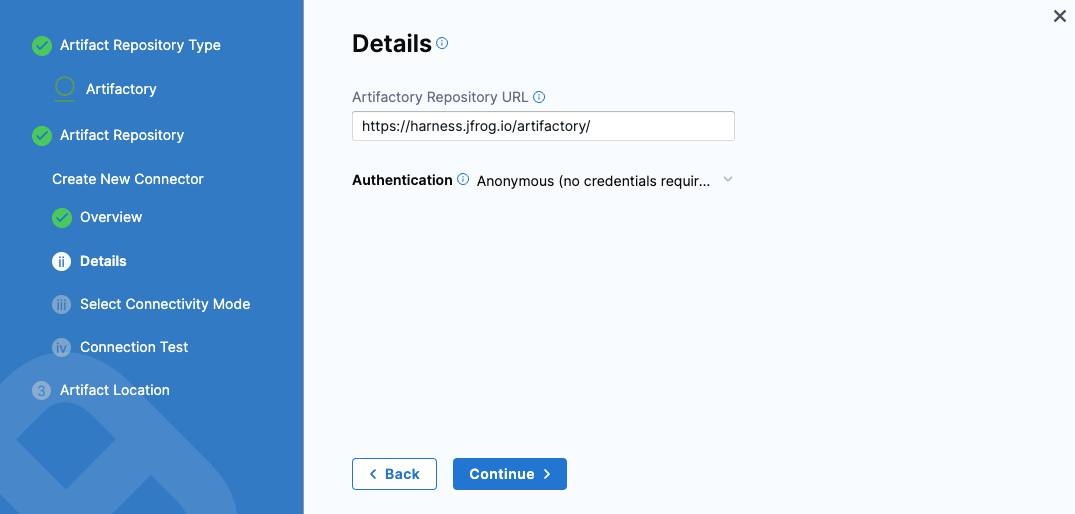 - Connect Harness with a public image hosted on Artifactory.