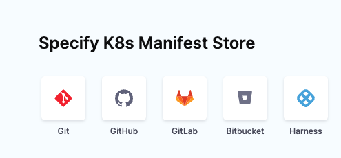 3. In Specify K8s Manifest Store, select Harness and select Continue.
