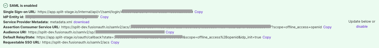 • Set a temporary Audience URI (SP Entity ID). You will also get the real value during the Split configuration and change it later.