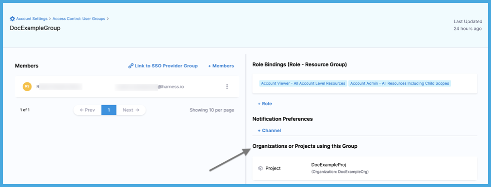 Initially, user groups have no permissions or access. You assign roles and resource groups to user groups, and then the permissions and access granted by the assigned roles and resource groups are applied to all group members. For more information about assigning roles and resource groups, go to RBAC in Harness: Role binding.