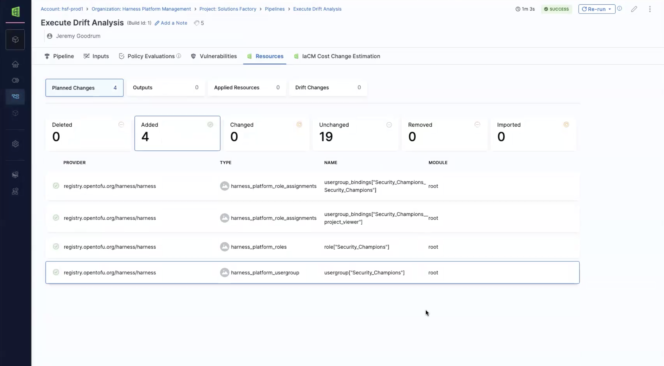 2. Approve the Provision pipelines that get started - this will change the tags and source to use the custom template library and apply the changes. For this example the Security Champions group will be added to all the projects.