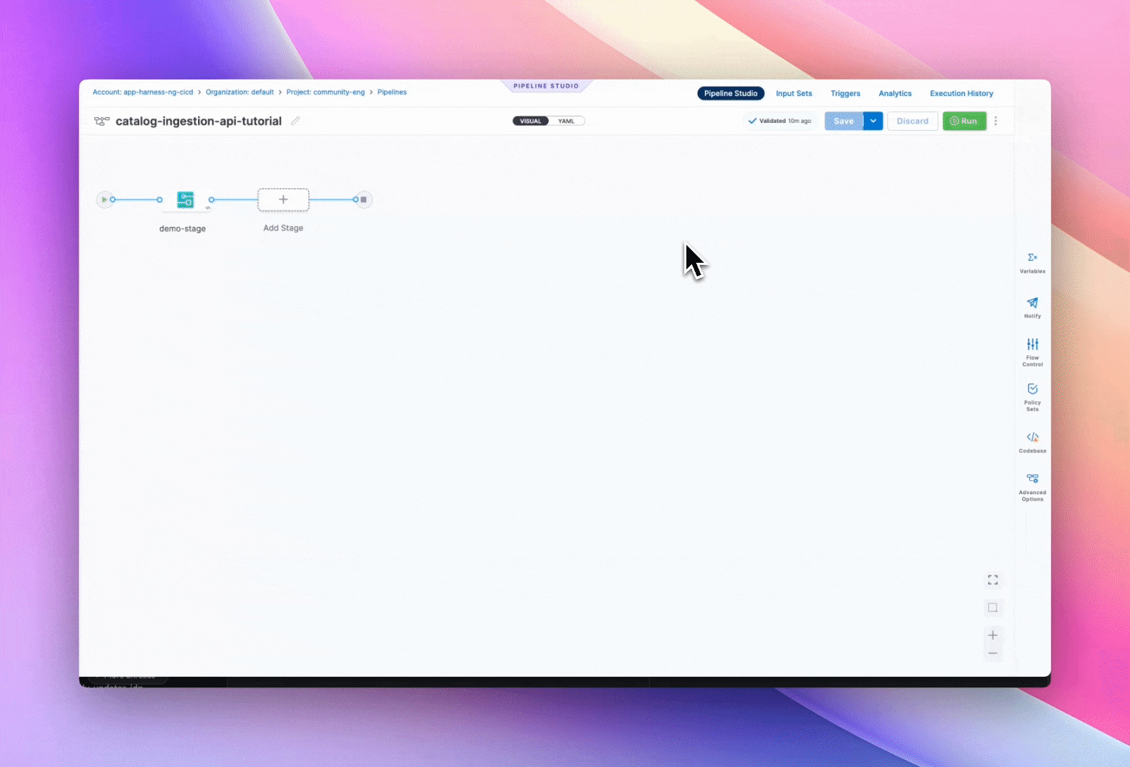 - We recommend the use of following Harness Pipeline to add a new metadata