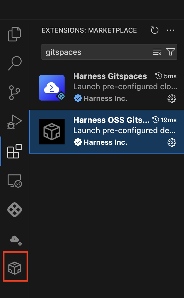 Once you have installed the extension, you will see the “Harness Open Source Gitspaces” logo in your sidebar.