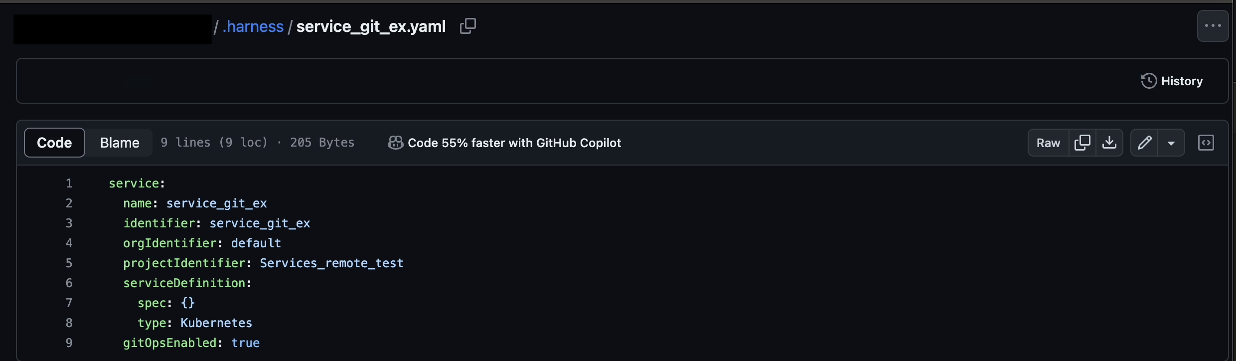 Click the YAML path to view your service YAML file in your Git repo.