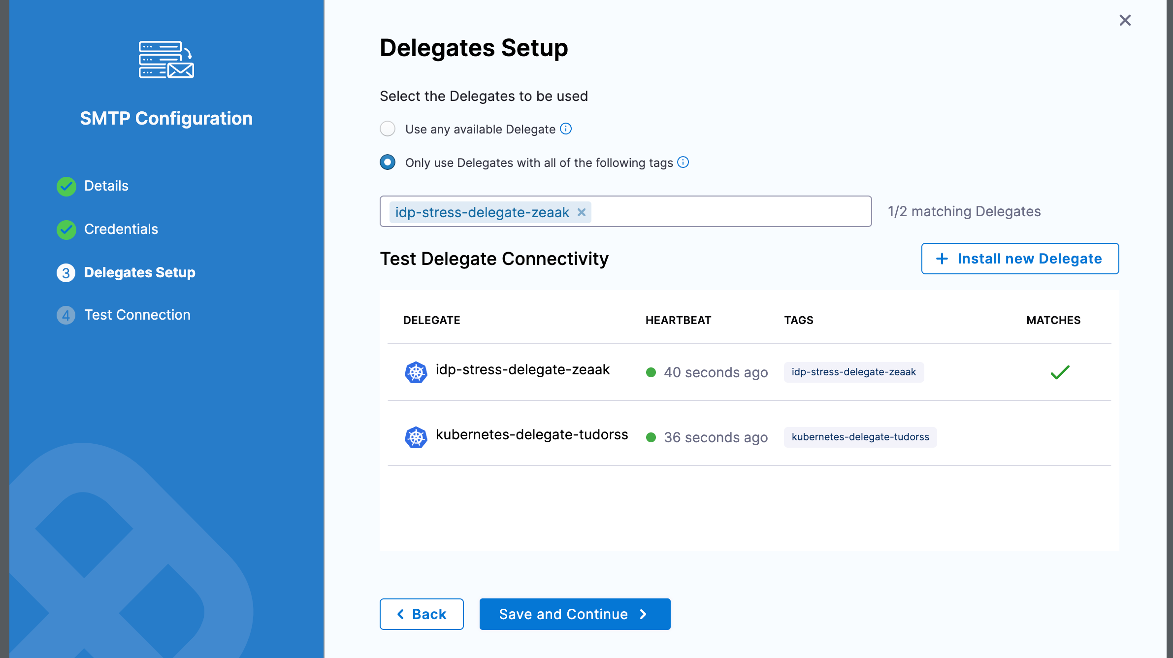 In Delegates Setup, use Selectors to select any specific Delegates you want to use.