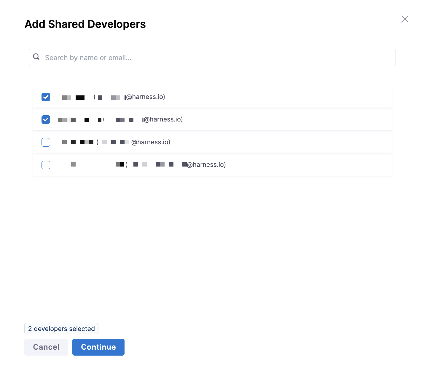 Search by name or email, and select one or more developers.